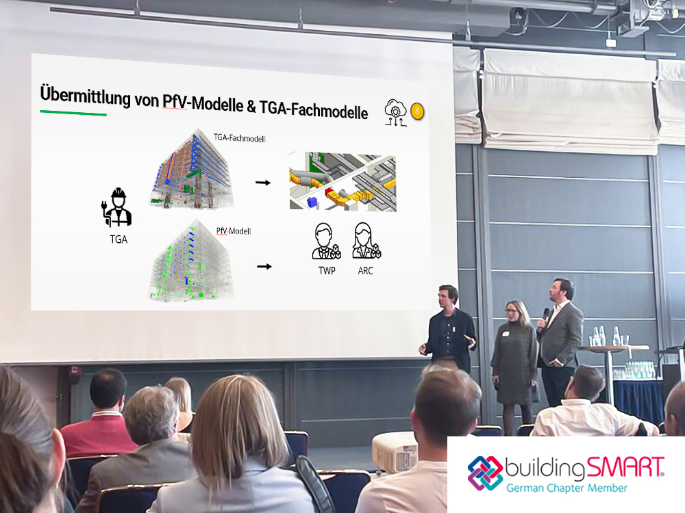 Anlässlich des 19. buildingSMART-Anwendertags in Dresden kam es am 4. Mai zum „echten“ Treffen der digitalen Ideen und Konzepte – endlich einmal nicht nur medial gestützt, sondern wieder ganz persönlich. Wir von HL-Technik waren im Konferenzraum 6 zum Thema Brandschutz und SuD-Planung dabei. Hier konnte Fabian Matschinsky gemeinsam mit Tanja Gutena und Alexander Hofbeck von Bollinger+Grohmann die digitale Unterstützung bei der Schlitz- und Durchbruchsplanung durch die BIM-Methodik praxisnah und im interdisziplinären Austausch erläutern. Mit unserem vielfach bewährten Modellansatz wird die Planung aller TGA-Beteiligten in diesem sensiblen Bereich erleichtert. Fehlplanungen können schon im Ansatz vermieden werden. Mehrkosten und spätere Betriebsrisiken minimieren wir deutlich. Die alltägliche BIM-Anwendung ist entscheidend – dies wurde in der anschließenden Diskussion wieder einmal unter Beweis gestellt.